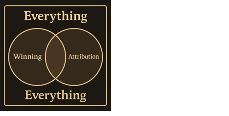 *This is a failed attempt by ChatGPT to display the above commentary about winning as a Venn diagram describing the relationship between “everything”, “winning” and “attribution” – which also anecdotally proves that artificial intelligence is not capable of “everything” just yet either.